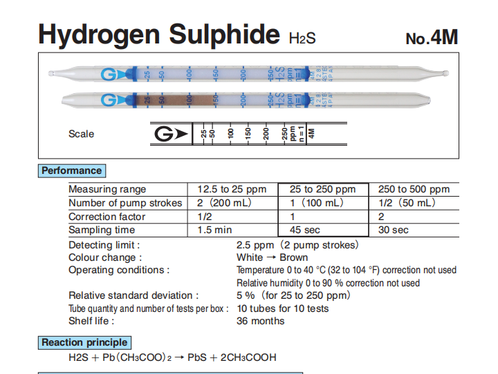 气体检测管的使用,就是在各种检测现场将检测气体通过手泵抽进检测管内,然后检测气体与检测管内的检测试剂发生化学反应,从而改变颜色,通过颜色变化程度比对检测管上的刻度得出检测结果,使用起来非常检测,但在GASTEC检测管的介绍中,我们发现检测管可以检测更大量程的检测气体,如GASTEC硫化氢检测管中,4M型号的硫化氢检测管的检测量程为12.5--500ppm,但在我们使用时发现,检测管管壁上的刻度为25--250ppm,这是什么原因呢?