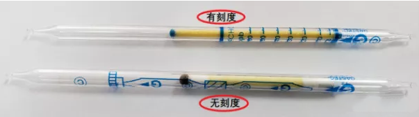 当我们打开检测管的包装后,我们会发现在一盒检测管内,却有两种检测管,两种检测管一种上面有相关刻度,一种检测管却没有刻度,这是为什么呢?当我们出现遮掩更多情况或许心中会有小小的疑问,那GASTEC 检测管包装盒内,为什么有的检测管上没有刻度?