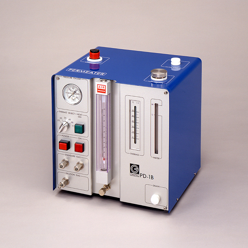 气体发生器是以渗透管和扩散管作为气体发生源的校准用气体发生器。渗透管和扩散管在保持恒温时,渗透扩散的量和蒸发扩散的量会保持恒定不变。因此、两种管在保持恒温时,以恒定流量送入空气或氮气等稀释气体,便可持续发生低浓度的校准气体。此气体发生法,用重量法得出的渗透扩散速度、蒸发扩散速度和稀释气体量的基础物理量,来决定气体浓度,可信度较高