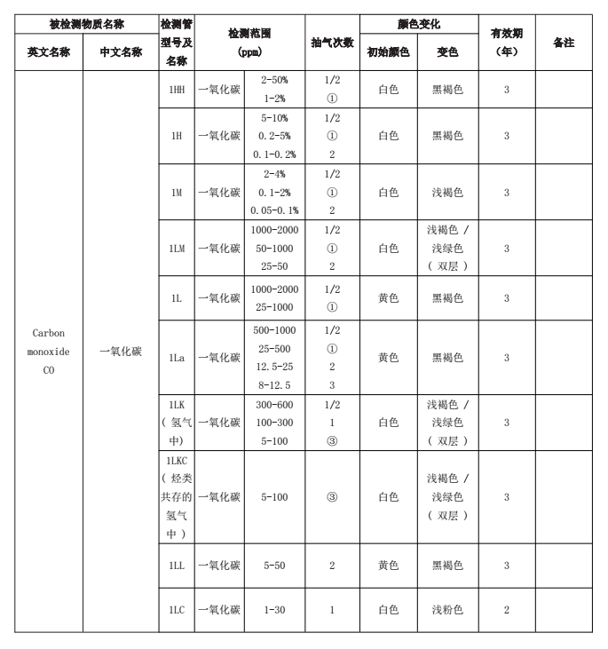 一氧化碳检测管是一根密封的细长玻璃管,因为填充有特定的试剂和着色剂而呈现特定的颜色,当含有一氧化碳的气体样品进入检测管后,会发生化学变化,从而引起颜色的变化。观察颜色变化的界限对应的刻度,即是被测样品中的一氧化碳的浓度。