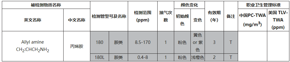 T:温度修正 H:湿度修正 +:双管 ++:9 支检测管 * :冷藏保存