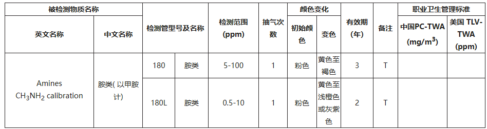 180L规格:此检测管用甲胺校准