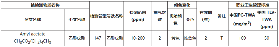 T:温度修正 H:湿度修正 +:双管 ++:9 支检测管 * :冷藏保存