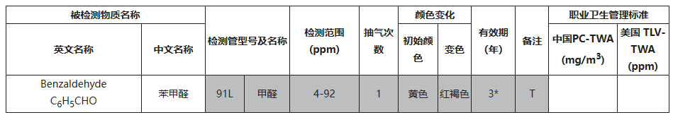 T:温度修正 H:湿度修正 +:双管 ++:9 支检测管 * :冷藏保存