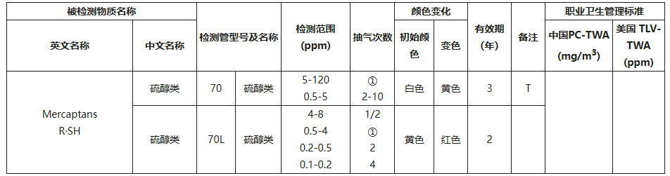70规格:此检测管用乙硫醇校正
